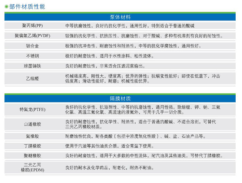 2、機械驅動隔膜,物料側無隔膜護盤,便于物料通過,PP、PVDF、316SS等多種泵頭材質可選,自清洗單向閥結構。
