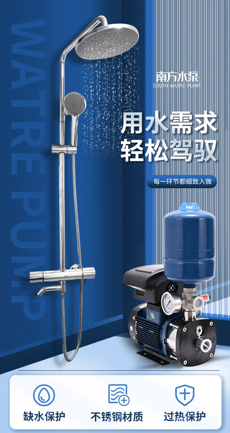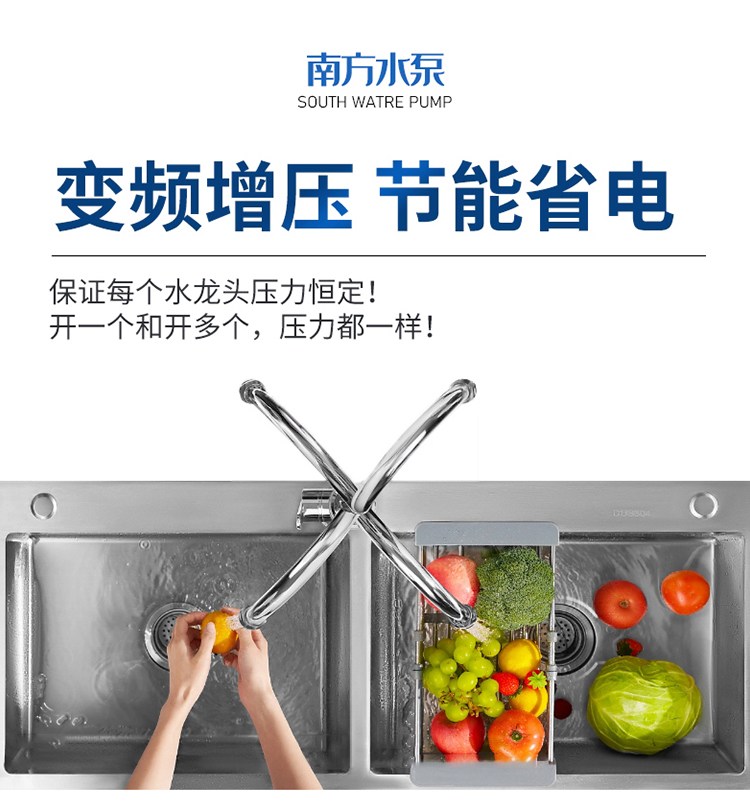 南方CHME系列臥式智能恒壓變頻泵采用了變頻調(diào)速及自動化控制相結(jié)合的技術(shù),配合高效節(jié)能的CHM非自吸輕型臥式多級離心泵。整機主要由CHM泵、控制器、傳感器、壓力罐、五通止回閥及軸向抗震壓力表等組成。具有性能穩(wěn)定、高效節(jié)能、全自動智能控制、低噪音、耐腐蝕、結(jié)構(gòu)緊湊、外形美觀、體積小、重量輕等特點。