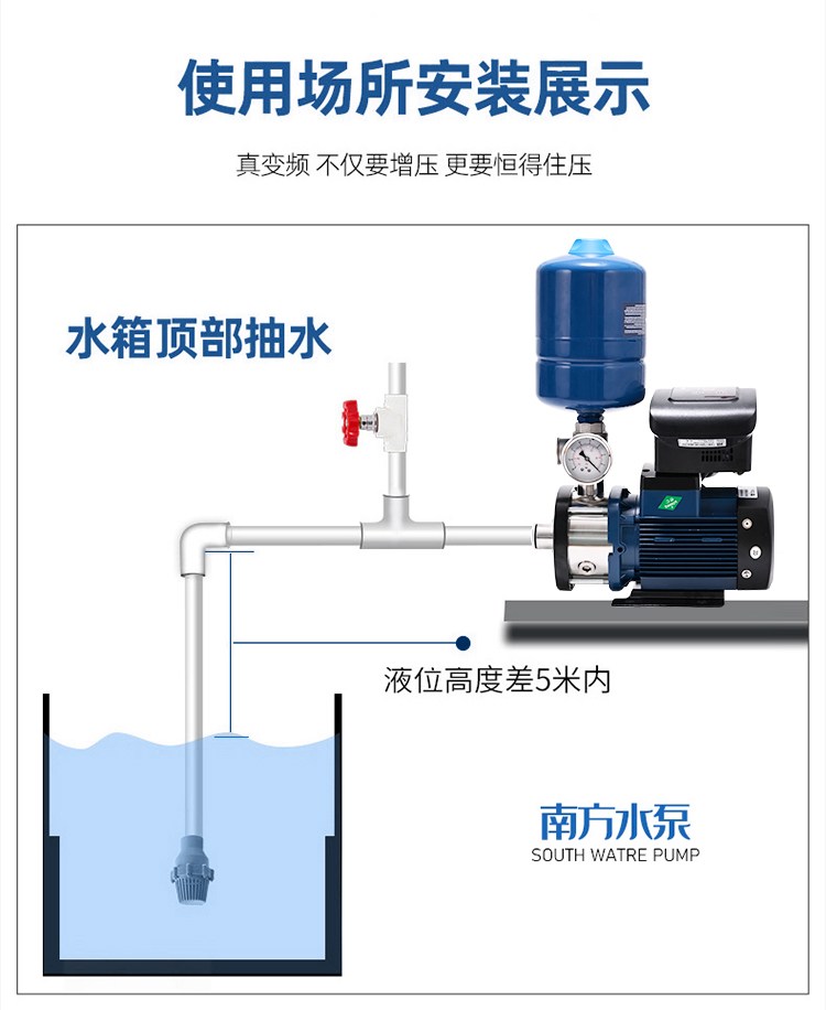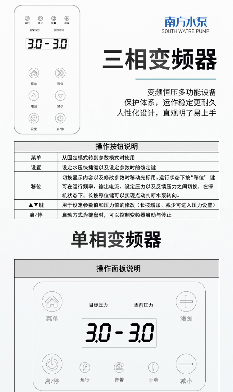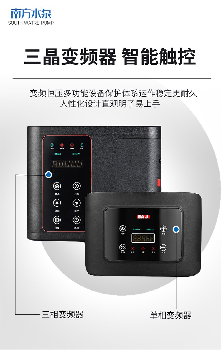 產(chǎn)品說明:南方chme系列臥式智能恒壓變頻泵采用了變頻調(diào)速及自動化控制相結(jié)合的技術(shù),配合高效節(jié)能的chm非自吸輕型臥式多級離心泵。